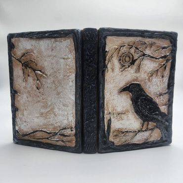This handmade raven journal is more than a writing companion—it’s a keepsake of mystery, creativity, and quiet ritual. The 3D resin-embossed cover features a watchful black raven against a twilight sky, capturing the magic of dusk and the stirrings of transformation. Every detail is thoughtfully crafted, lending the piece a vintage allure and a sense of wonder.